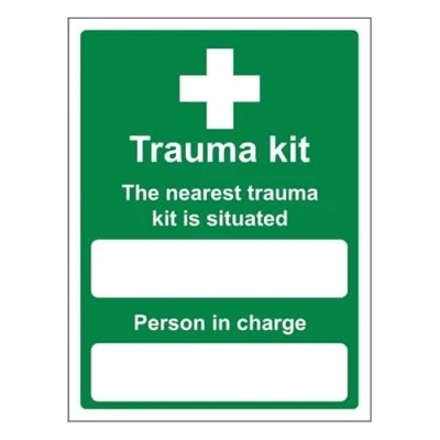 Enables fast and effective location of your trauma kit in the event of an emergency. The HSE guidance on The Health and Safety (First-Aid) Regulations 1981 states that employers must ensure that first-aid equipment and facilities are suitably marked and easily accessible Provides clear information to employees and visitors. Ensures emergency trauma kits can be located swiftly and life-saving treatment can be given as soon as possible Ideal for use in public premises and event venues. Complies with the Health and Safety (Safety Signs and Signals) Regulations 1996 Conforms to EN ISO 7010. Bold, high-quality print signage, delivers a clear and crisp message using durable UV-stabilised inks