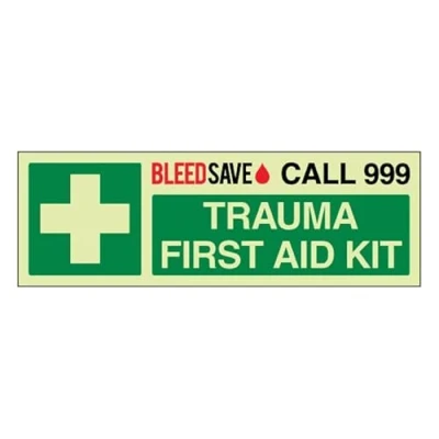 Bleedsave Trauma First Aid Kit Call 999 Landscape 300 x 100 mm Glow In The Dark Self Adhesive Vinyl Safety Sign