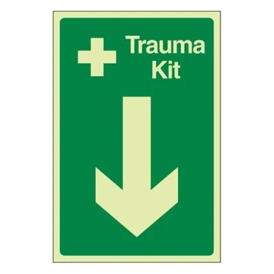 Bleedsave Trauma Kit Arrow Down 200 x 300 mm Glow In The Dark Self Adhesive Vinyl Safety Sign
