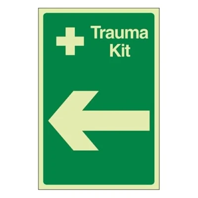 Bleedsave Trauma Kit Arrow Left 200 x 300 mm Glow In The Dark Self Adhesive Vinyl Safety Sign