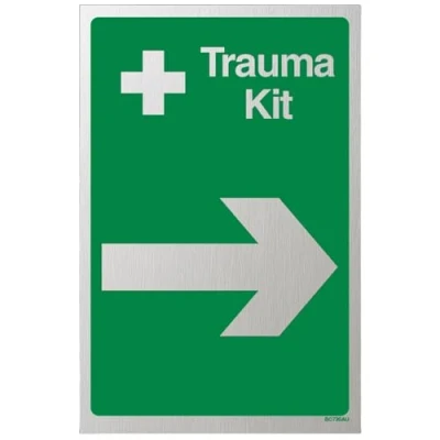 Bleedsave Trauma Kit Arrow Right 200 x 300 mm 3mm Brushed Aluminium Composite Safety Sign