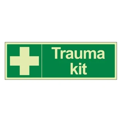 Bleedsave Trauma Kit Landscape 450 x 150 mm Glow In The Dark 1mm Rigid Plastic Safety Sign