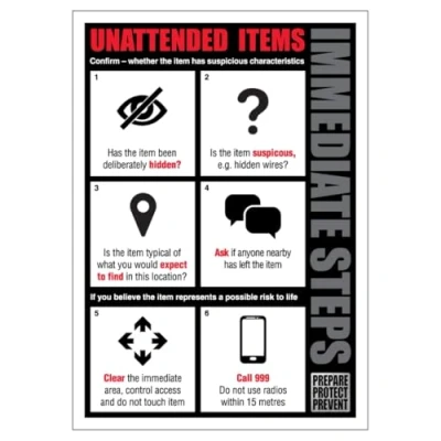 BLEEDSAVE Unattended Item Action Card 148 x 210 mm (A5) 1mm Rigid Plastic Safety Sign
