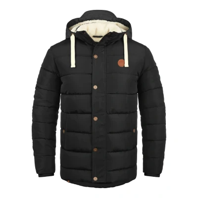 Details + Highlights: padded, quilted effect, detachable hood (high-fastening) with drawstring and adjustable cords, Teddy lining, side pockets, an inner pocket with zip, Elastic cuffs, leather logo patch on the front, zip FITTING: Regular Fit - our male model is 1,81m (5'11"") tall and wears size Medium. Do you usually wear a size Medium? Then it fits you just right in this piece as well! Thanks to it's high-quality and heavy weight material this casual and classic warm jacket is very pleasant to wear. As other outdoor jackets like a winter parka or raincoat, this one is a must-have this cold season! Hiking in the mountains or walking through the streets, this casual jacket is crucial for your wardrobe.
