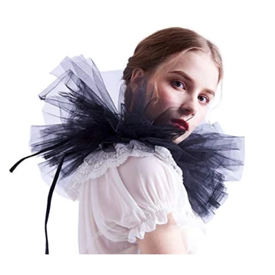 Package include: 1PC Neck Ruffle. Garment Care: Hand Washable with Cold Water Tiled Size: Collar Length about 35cm/13.8" Mesh, Pleats, Layered, Ribbon Lace-up collar Please smooth and stretch the collar upwards gently along the original ruffle parts after you put it on to reach the effect the pictures showed Ideal for gifts,cosplay,costuming, whimsy, LARP, Halloween