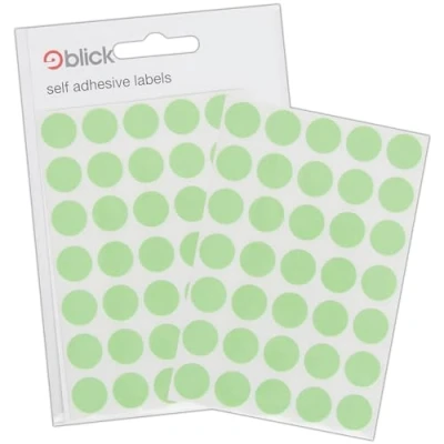THESE Blick Labels come in a pack of Self Adhesive Stickers and are Coloured Dot, Circles in shape and Fluorescent Green in colour. Each individual Labels size are 13mm and there are 140 included BLICK have a massive range of office, school and warehouse labels that are suitable for everything from file organisation, reward charts, letter labels and office signs AVAILABLE as small packs, office packs, warehouse packs, on a roll, on lable sheets for printers, mixed packs and assorted colours STICKERS for school, home, reward charts, height charts and more, Blick's self adhesive stickers come in a range of colours and sizes, from hearts to stars and cirles to rectangles ORGANISE your cupboards and home or in the office, labels for jars, spices, home baking, in tray, files and more with Blick's comprehensive range of labels and stickers