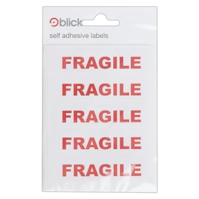 THESE Blick Labels come in a pack of Self Adhesive Stickers and are Fragile in shape and Shipping in colour. Each individual Labels size are 19mm x 63mm and there are 35 included BLICK have a massive range of office, school and warehouse labels that are suitable for everything from file organisation, reward charts, letter labels and office signs AVAILABLE as small packs, office packs, warehouse packs, on a roll, on lable sheets for printers, mixed packs and assorted colours STICKERS for school, home, reward charts, height charts and more, Blick's self adhesive stickers come in a range of colours and sizes, from hearts to stars and cirles to rectangles ORGANISE your cupboards and home or in the office, labels for jars, spices, home baking, in tray, files and more with Blick's comprehensive range of labels and stickers