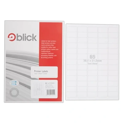 THESE Blick Labels come in a pack of 10Per Sheet 100 Sheets and are Rectangular in shape and White in colour. Each individual Labels size are 99.1mm x 57mm and there are 1000 included BLICK have a massive range of office, school and warehouse labels that are suitable for everything from file organisation, reward charts, letter labels and office signs AVAILABLE as small packs, office packs, warehouse packs, on a roll, on lable sheets for printers, mixed packs and assorted colours STICKERS for school, home, reward charts, height charts and more, Blick's self adhesive stickers come in a range of colours and sizes, from hearts to stars and cirles to rectangles ORGANISE your cupboards and home or in the office, labels for jars, spices, home baking, in tray, files and more with Blick's comprehensive range of labels and stickers
