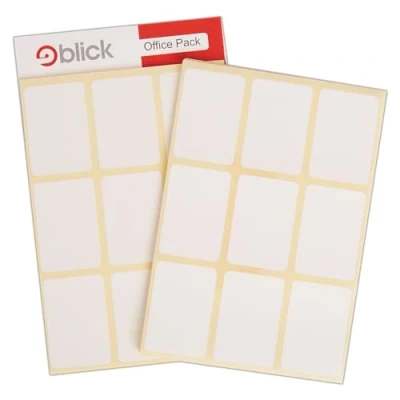 THESE Blick Labels come in a pack of Self Adhesive Stickers Office Pack and are Rectangular in shape and White in colour. Each individual Labels size are 34mm x 50mm and there are 360 included BLICK have a massive range of office, school and warehouse labels that are suitable for everything from file organisation, reward charts, letter labels and office signs AVAILABLE as small packs, office packs, warehouse packs, on a roll, on lable sheets for printers, mixed packs and assorted colours STICKERS for school, home, reward charts, height charts and more, Blick's self adhesive stickers come in a range of colours and sizes, from hearts to stars and cirles to rectangles ORGANISE your cupboards and home or in the office, labels for jars, spices, home baking, in tray, files and more with Blick's comprehensive range of labels and stickers