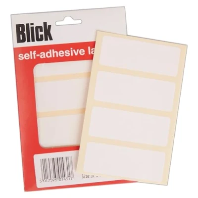 THESE Blick Labels come in a pack of Self Adhesive Stickers Warehouse Pack and are Rectangular in shape and White in colour. Each individual Labels size are 34mm x 90mm and there are 160 included BLICK have a massive range of office, school and warehouse labels that are suitable for everything from file organisation, reward charts, letter labels and office signs AVAILABLE as small packs, office packs, warehouse packs, on a roll, on lable sheets for printers, mixed packs and assorted colours STICKERS for school, home, reward charts, height charts and more, Blick's self adhesive stickers come in a range of colours and sizes, from hearts to stars and cirles to rectangles ORGANISE your cupboards and home or in the office, labels for jars, spices, home baking, in tray, files and more with Blick's comprehensive range of labels and stickers