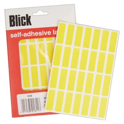 THESE Blick Labels come in a pack of Self Adhesive Stickers and are Rectangular in shape and Yellow in colour. Each individual Labels size are 12mm x 38mm and there are 896 included BLICK have a massive range of office, school and warehouse labels that are suitable for everything from file organisation, reward charts, letter labels and office signs AVAILABLE as small packs, office packs, warehouse packs, on a roll, on lable sheets for printers, mixed packs and assorted colours STICKERS for school, home, reward charts, height charts and more, Blick's self adhesive stickers come in a range of colours and sizes, from hearts to stars and cirles to rectangles ORGANISE your cupboards and home or in the office, labels for jars, spices, home baking, in tray, files and more with Blick's comprehensive range of labels and stickers