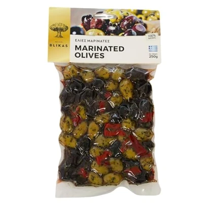 Flavourful Olive Mix: A vibrant blend of Greek green olives and Kalamata black olives, marinated with oregano and red pepper for a bold, aromatic taste. Herb & Pepper Infusion: Seasoned with Mediterranean oregano and mild red pepper to create a savoury, slightly spicy flavour profile. Grown & Marinated in Greece: Harvested from Greek olive groves and prepared using traditional brining and marinating methods. Ideal for Snacking, Sharing & Cooking: Enjoy as part of a mezze platter, in salads, or as a flavourful topping for pizza, pasta, or grain bowls. Vegetarians and vegans who are open to tasting other options can, also, enjoy them.