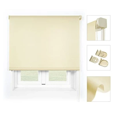 Premium quality roller curtains with heavy fabric quality, more resistant accessories, best workmanship. Made in Spain The blind provides greater stability and durability thanks to the 38 mm diameter aluminium inner tube compared to the 28 mm standard model Fixings to the wall or ceiling made of metal. Cover caps cover screw and chain in tone with the colour of the pleated blind and ensure a high-quality look. Technical fabric specially developed for roller blinds. Material: 100% polyester, hypoallergenic and mould-resistant. The fabric is fire retardant class 1 Features a hidden aluminium counterweight that improves the fall of the fabric and prevents wrinkles. Translucent fabric that lets light through but prevents it from being visible from outside. High colour fastness compared to sunlight value 6 over 8. Easy to clean with a slightly damp cloth Improved chain mechanism allows you to get the pleated blind in and out of the gentle, easy and convenient Ensures longevity. Comes on the right side but is easily interchangeable on the left side