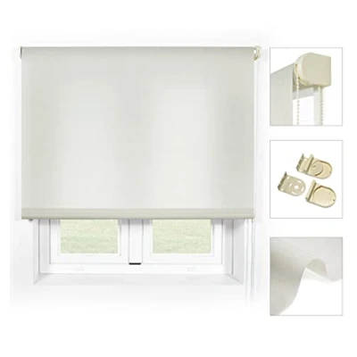 Premium quality roller curtains with heavy fabric quality, more resistant accessories, best workmanship. Made in Spain The blind provides greater stability and durability thanks to the 38 mm diameter aluminium inner tube compared to the 28 mm standard model Fixings to the wall or ceiling made of metal. Cover caps cover screw and chain in tone with the colour of the pleated blind and ensure a high-quality look. Technical fabric specially developed for roller blinds. Material: 100% polyester, hypoallergenic and mould-resistant. The fabric is fire retardant class 1 Features a hidden aluminium counterweight that improves the fall of the fabric and prevents wrinkles. Translucent fabric that lets light through but prevents it from being visible from outside. High colour fastness compared to sunlight value 6 over 8. Easy to clean with a slightly damp cloth Improved chain mechanism allows you to get the pleated blind in and out of the gentle, easy and convenient Ensures longevity. Comes on the right side but is easily interchangeable on the left side