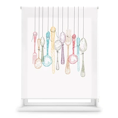 Blindecor Digital Kitchen Translucent Roller Blind with Print Cutlery Model 130 x 180 cm (W H) Fabric Size 127 175 Window Blinds