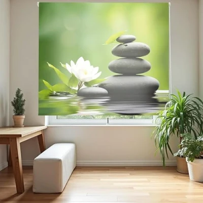 Blindecor Digital Translucent Printed Roller Blind Zen Family Model Z Pond 130 x 180 cm (W H) Fabric Size 126 175 Window Blinds
