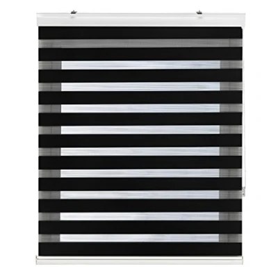 Blindecor Lira Luxury Double layered roller blind, Night and Day, Black, 120x180cm (width x length)