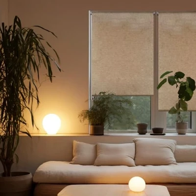 Roller blind 80% Polyester 20% Linen. Drill-free installation with easyfix system. PVC mechanism and chain in beige. Adjustable chain mechanism with child safety The width of the product, including brackets, is 52 cm. Fabric measures 49cm wide. The length of the fully opened product plus the mechanism measures 180 cm. Fabric only measures 176 cm. Wall or ceiling installation with the same anchors OPTIONAL Easy to clean with a slightly damp cloth. Elegant aesthetic roller blind