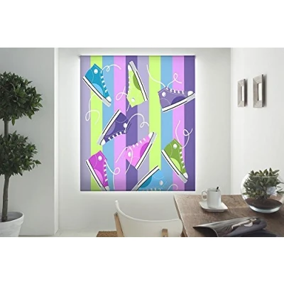 AmazonFabric measurements: 147 cm wide x 180 cm high Includes: child safety system, dowels, screws, brackets, counterweight and installation instructions (English language not guaranteed) Ceiling or wall installation Rollable and elegant aesthetics