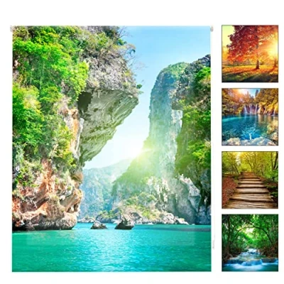 AmazonFabric Dimensions: 147 cm wide x 180 cm high Includes weighting; Child Safety System, dowels, screws, brackets, and installation instructions Mounts to ceiling or wall