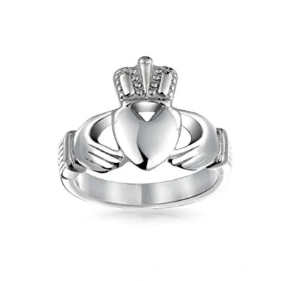 Bling Jewelry BFF Celtic Irish Friendship Couples Promise Claddagh Ring for Men Women Silver Tone Stainless Steel