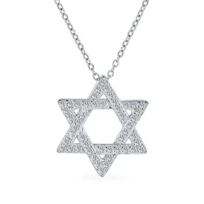 Bling Jewelry Cubic Zirconia CZ Accent Traditional Religious Magen Judaica Hanukkah Intertwined Star of David Pendant Necklace for Women Teen Bat Mitzvah .925 Sterling Silver