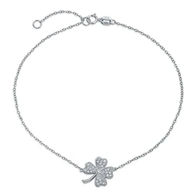 Bling Jewelry Cubic Zirconia CZ Four Leaf Clover Shamrock Flower Anklet Lucky Charm Ankle Bracelet for Women .925 Sterling Silver Adjustable 9, 10 Inch