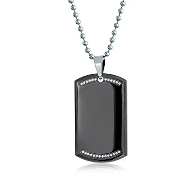 Bling Jewelry Engravable CZ Edge Black Dog Tag Pendant Necklace for Men Polished Stainless Steel with Bead Ball Chain 24 in
