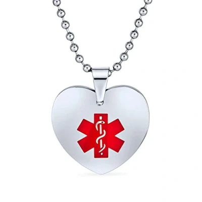 Bling Jewelry Engravable Medical Identification ID Heart Dog Tag Pendant Necklace for Women Teen Stainless Steel