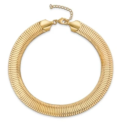 Bling Jewelry Flexible Flat Contoured Fit Collar Gold Tone Herringbone Snake Chain Omega Choker Necklace for Women Teen 15 Inch 10MM Wide