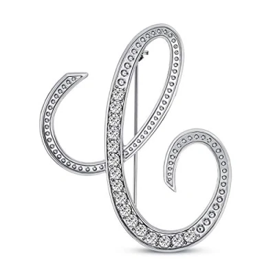 Bling Jewelry Large Statement ABC Pave Crystal Cursive Script Monogram Letters Alphabet Initial C Scarf Lapel Pin Brooch for Women Silver Plated