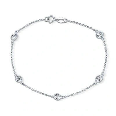 Bling Jewelry Minimalist Simple Cubic Zirconia Round Bezel Chain CZ by The Inch Bracelet for Women Teen .925 Sterling Silver 7.5
