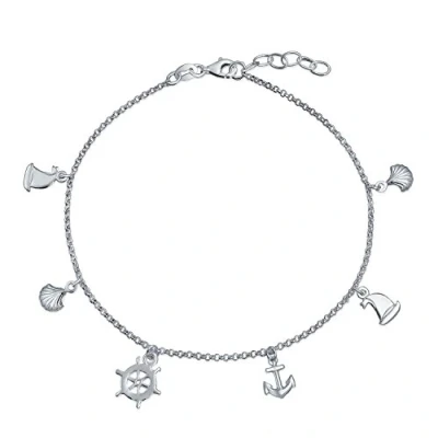 Bling Jewelry Nautical Multi Charm Dangle Anchor Sailboat Ship Wheel Sea Shell Anklet Ankle Bracelet for Women .925 Sterling Silver Adjustable 9, 10 Inch with Extender