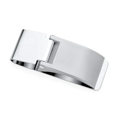 Bling Jewelry Personalized Large Wide Strong Simple Plain Fold Over Hinged Style Men Money Clip Card Holder for Teens Father Silver Tone Stainless Steel Customizable