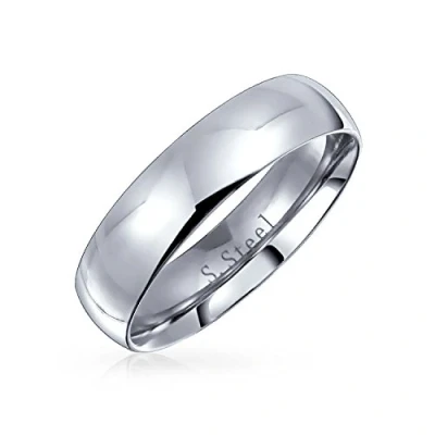 Bling Jewelry Plain Simple Dome Couples Ring Wedding Band for Women Men Polished Silver Tone Stainless Steel 5MM