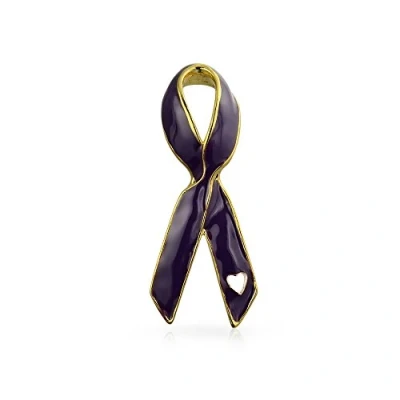 Bling Jewelry Prevention and Awareness Purple Ribbon Pancreatic Cancer Survivor Brooch Pin Open Heart Enamel Gold Plated Inspirational Accessory for Women