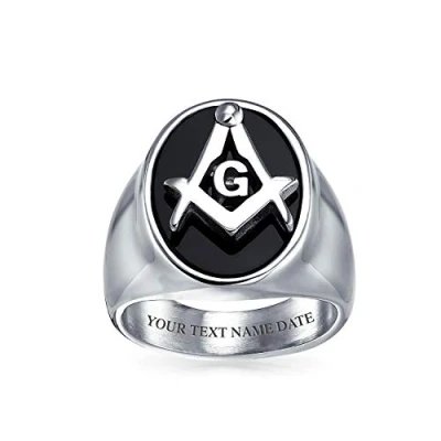 ELEGANT CRAFTSMANSHIP - Proudly showcase your brotherhood with this exquisitely crafted men's Masonic ring, featuring a captivating design with simulated onyx resin set in polished stainless steel. Size 10 ring. Measure: 5 MM Band Width, Weight: 13.7 Gram, Material: Stainless Steel, Resin, HYPOALLERGENIC lead-free, non-fading, non-rusting, non-green, Non-irritating to Skins. Striking Two-Tone Design: Gleaming silver-tone stainless steel paired with simulated black onyx resin offers a bold, dimensional appearance with a commanding presence. Thoughtful Gifts for Him: Our jewelry is the perfect choice for special occasions such as Fathers Day, birthdays, Christmas, holidays, graduations, groomsmen gifts, anniversaries, and Valentines Day. Whether its for your best friend, boyfriend, brother, dad, grandfather, son, husband, uncle, nephew, or even to treat yourself, our unique pieces make for meaningful and stylish gifts for men. USA-Based Company with 30-Day After-Sale Service: We take pride in our craftsmanship and product quality. Rest assured, if you receive an item with manufacturing defects, we've got you covered. Click on the link to contact our friendly customer service.