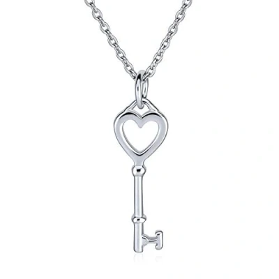 Bling Jewelry Simple Romantic Key to Your Heart Open Necklace Pendant for Women Teens Girlfriend .925 Sterling Silver