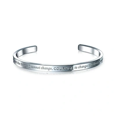 Bling Jewelry Unisex Inspirational Message Quotable Religious Mantra Stackable Serenity Prayer Cuff Bracelet for Men Women Stainless Steel