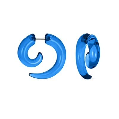 Bling Jewelry Unisex Translucent Neon Blue Large Round Swirl Spiral Tribal Fake Faux Ear Plug Taper Earrings Acrylic Resin Surgical Steel Women Men Teen