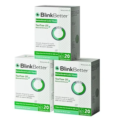 INSTANT RELIEF: Find immediate relief from discomfort and common eye conditions, such as blepharitis and dry eyes, with our BlinkBetter Eyelid Wipes. Powered by natural ingredients like tea tree oil, chamomile, and aloe vera. CLEANSING: BlinkBetter's dual textured eyelid wipes are thicker and more effective, they remove debris & dirt gently yet thoroughly. Soft side for gentle cleaning, textured side for a powerful scrub — a blepharitis cleanse like never before. SOOTHING: Experience the soothing touch of natural ingredients like chamomile and aloe vera, providing comfort to tired and irritated eyes. REFRESHING: Revitalise your eyes with BlinkBetter's "3x moisture" technology, and feel instantly refreshed. These wipes, maintaining extra moisture, offer a refreshing experience with every use. Enjoy long-lasting comfort and a revitalising sensation. EXPERT RECOMMENDED: Trusted by eye care professionals, our wipes are expert-recommended for effective blepharitis and dry eye relief.