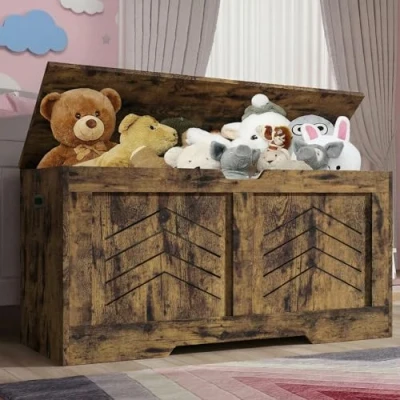 Blisswood Toy Box, Wooden Storage Chest, Large Blanket Box with Lid & Safety Hinges, Bench Organizer for Kids, Boys Girls, Baby Toybox Bedroom, Playroom (Rustic)