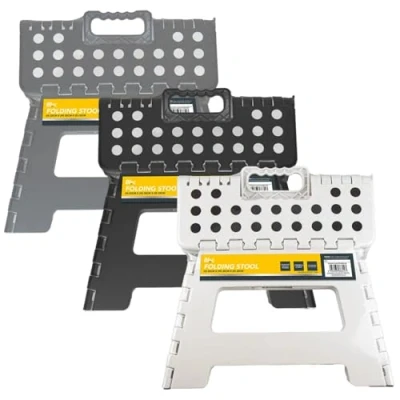 CONVENIENT FOLDING DESIGN – This folding stool opens and closes in seconds, making it a handy seat or step stool whenever you need it. Its slim profile ensures it can be stored easily in cupboards, car boots, or under furniture LIGHTWEIGHT AND PORTABLE – Easy to carry from room to room, this collapsible stool is perfect for both indoor and outdoor use. Take it with you for picnics, camping trips, or use it as a quick extra seat at home VERSATILE EVERYDAY USE – Whether as a kitchen stool, a small step for reaching shelves, or a seat in the garden, this stool adapts to many situations. It’s also suitable for children, offering a practical and safe height boost STURDY AND PRACTICAL – Built to be functional, this folding step stool provides reliable support for everyday tasks. Its simple design ensures stability, while the foldable frame makes it quick to set up and put away SPACE-SAVING SOLUTION – Unlike bulky chairs or a small step ladder, this foldable stool folds flat when not in use, saving valuable space. Ideal for smaller homes, caravans, or anywhere storage is limited ASSORTED COLOURS – Available in black, grey, or white. Please note that the colour you receive will be selected at dispatch and may differ based on availability