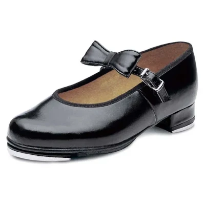 Sizes shown on packaging are BLOCH manufacturing sizes and are not representative of UK/US/EU sizing * Great introductory synthetic leather tap shoe with a removable matching bow that slides on and off the instep strap * Features cushioned insole for comfort and shock absorption and elastic strap join to release tension on the instep * Heel height: 2.5cm * Material: Synthetic leather * Sole: Rubber * Lining: Polyester/Cotton * Toe taps attached with rivets * Heel taps attached with screws