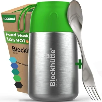 Superior Heat Retention – Our food flasks for hot food are designed to keep your food warm for up to 14 hours, making it ideal for work or school - The double-walled construction of the thermal food flask, ensures warm meals anytime Leakproof and Durable – With the thermal food container is made from 18-08 stainless steel, will not rust or break and is 100% leakproof - The wide opening makes it easy to fill, eat from and cleaning it Versatile and Convenient – The Insulated food container makes it easy to serve warm meals anywhere – It comes with a cotton bag which has a pocket for the spork, making it the ideal soup flask Compact and Portable – Our hot food lunch box is lightweight and designed for easy transport, ideal for travel or commuting. With the carabiner, it is easy to attach to your bag Easy to Clean and Maintain – The hot food flask is easy to clean and dishwasher safe – Made from BPA-free materials, ensuring that your food stays fresh and safe, Weight: 1.0251495183 pounds, Manufacturer: Blockhütte GmbH