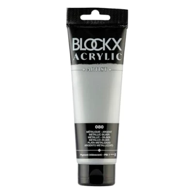 Blockx 60080BXC Acrylique Fine Semi transparentee et Satinée Métallique Argent Pigment Iridescent/Pbi 7 120ml