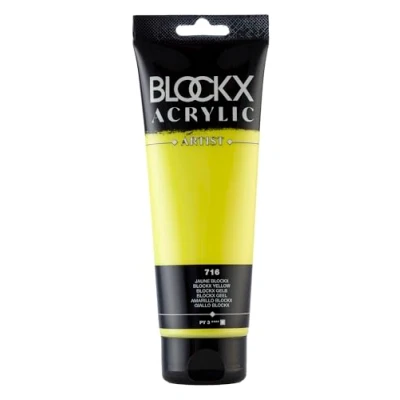 Colour: Discover our deep, intense BLOCKX Yellow, featuring a unique, highly concentrated PY 3 pigment. Made with pure acrylic resin to prevent yellowing. OPACITY: Transparent, it allows the shade/texture on which it is applied to show through perfectly, while using very little material. FINISH: creamy texture, satin finish and discreet fragrance USE: apply with a brush or spatula. Acrylics are water-soluble and miscible with each other. Suitable for various paper and canvas supports Suitable for beginners and experienced artists. Make this acrylic your ideal partner for exploring and expressing your creativity.