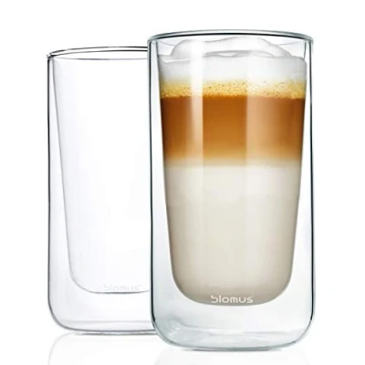 No risk of burning: The insulating effect of the double gl wall of the Nero Thermogl ser protects your ends from hot/cold temperatures of the drink, perfect for individual use of the shapely n Gl ser Thermal function: The drinking gles from the traditional company Blomus maintain the initial temperature of the drink for a maximum period of time, so you can enjoy time when drinking the drink and still enjoy a warm drink Real eye-catcher: The trendy floating effect ensures a very special wow factor. Not only design lovers will have a real pleasure, but also at every family celebration will impress you. Also ideal as a gift Easy to clean: The double-walled thermal glasses from the traditional company Blomus are particularly easy to clean, as they are dishwasher safe. Note: Not suitable for use in the oven or microwave Box contents: 1 x Blomus NERO set of 2 latte macchiato glasses, 320 ml capacity, double-walled thermal glass, -floating / floating effect, dishwasher safe (H x W x D): 14 x 7.5 x 7.5 cm, glass, 63655) Material: clear glass Dimensions: H 11,5 cm , Ø 7,5 cm Volume: 320 ml