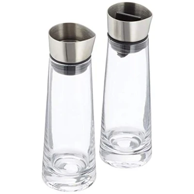 Combines great product design and function. 150 ml content Dishwasher safe Air tight lid Drip free pouring Material: Stainless Steel/Plastic/Silicone/Glass Capacity: 180 ml each Dimensions: 17 x 5,5 x 5,5 cm
