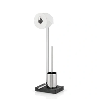 Combines great product design and function. With toilet brush and toilet paper holder. Made from high class Stainless Steel/ and polystone Compact and stylish Design by flöz Material: Stainless steel/Polystone Content: Toilet brush and toilet paper roll holder on a stand Dimensions: 15 x 20 x 63,5 cm